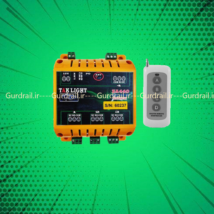 بوسیله این دستگاه امکان کنترل انواع لوازم برقی بوسیله ریموت کنترل رادیویی از فاصله دور فراهم می شود. با فشار دادن دکمه های ریموت RF موج رادیویی با فرکانس مشخص به گیرنده ارسال شده و رله های تعبیه شده بر روی گیرنده قادر اند انواع تجهیزات الکتریکی با ولتاژهای مختلف را روشن یا خاموش نموده و کنترل از راه دور را برای کاربر میسر سازند. رله های 30 آمپری با قابلیت اتصال فیش تعبیه شده بر روی برد دستگاه قابلیت جریان دهی به بارهای الکتریکی با توان نسبتا بالا را داشته و امکان کنترل تعداد زیادی لامپ روشنایی یا تجهیزات الکتریکی پر مصرف را فراهم خواهند کرد.